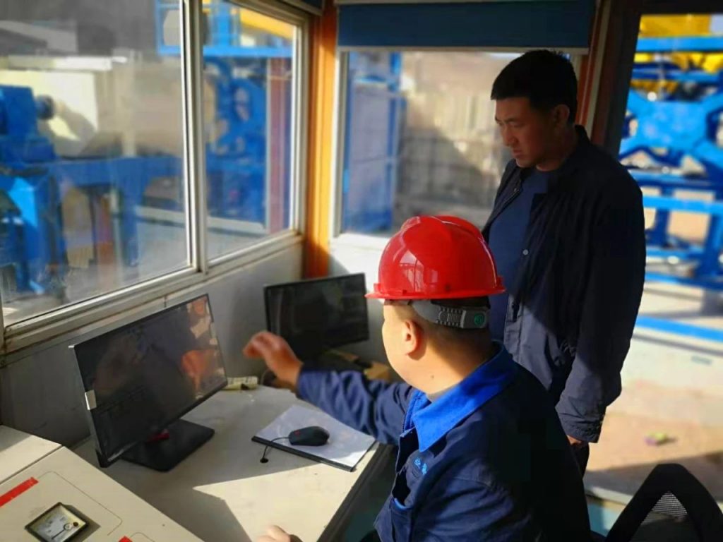 在中建股份國道310南移5000型瀝青站,專業(yè)工程師正進(jìn)行調(diào)試工作,為優(yōu)質(zhì)瀝青料的生產(chǎn)保駕護(hù)航。