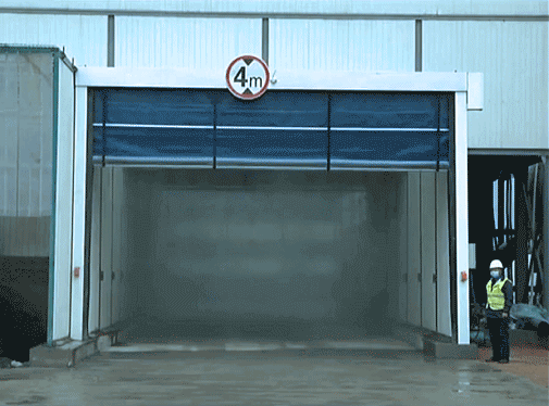 車道密封設(shè)有吸塵管道、防塵軟簾及水霧噴淋裝置,吸附瀝青煙氣,加快粉塵沉降,并配有電動(dòng)卷簾門,避免揚(yáng)塵和瀝青煙氣外泄。
