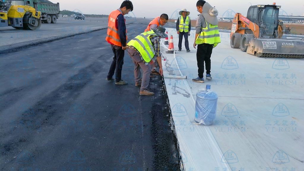 此次瀝青混凝土施工為一跑道大修工程重要環(huán)節(jié),施工項目從南向北分層實施,先完成跑道區(qū)域,再完成快速滑行道區(qū)域,最后完成道肩區(qū)域。主跑道施工采用6臺攤鋪機全斷面施工,實現(xiàn)無縫銜接;快速滑行道直線段施工采用4臺攤鋪機全斷面施工,邊角部位增加攤鋪機協(xié)同作業(yè),盡可能減少冷接縫,每條快滑計劃一次性連續(xù)攤鋪完成。該項目瀝青混合料總用量超過12萬噸。